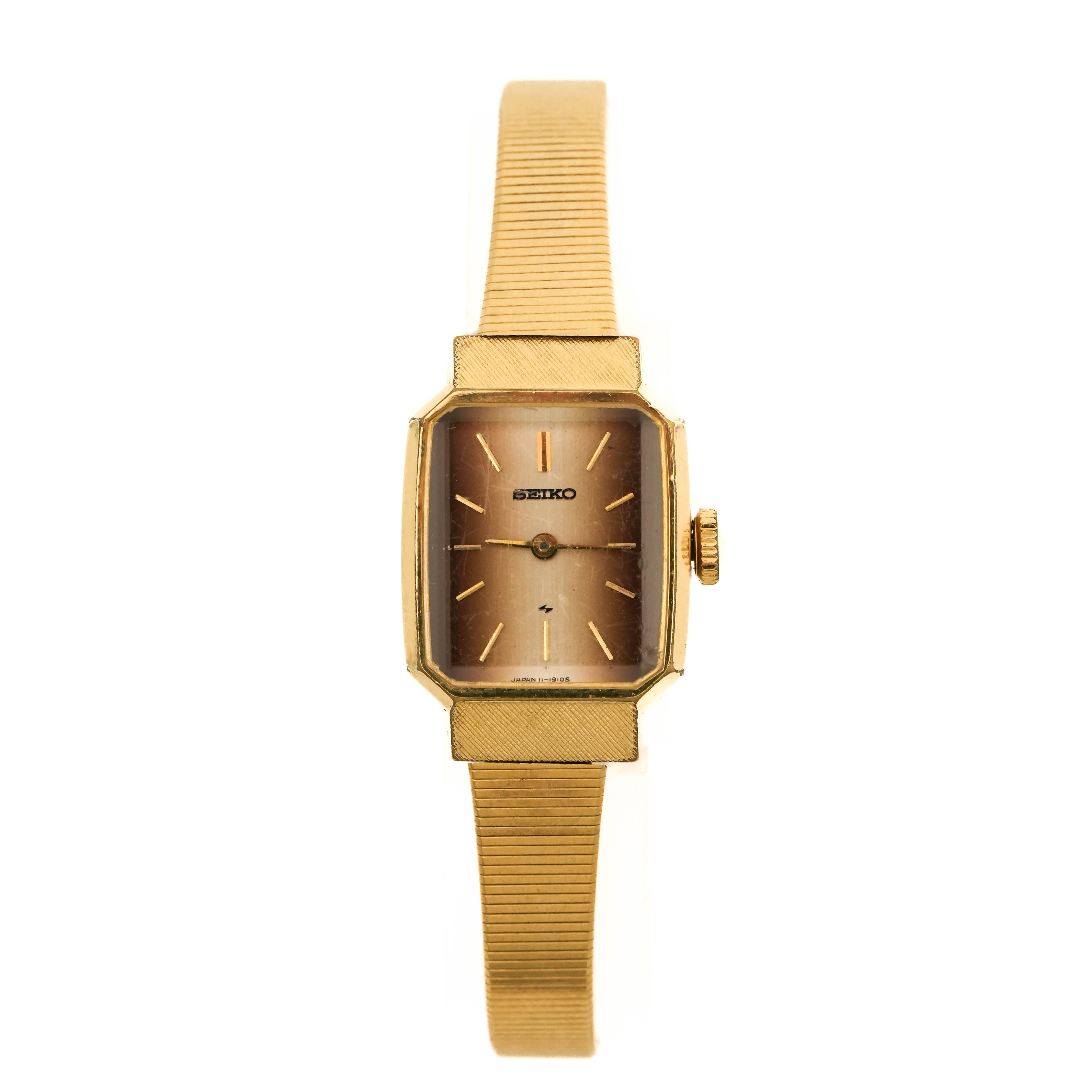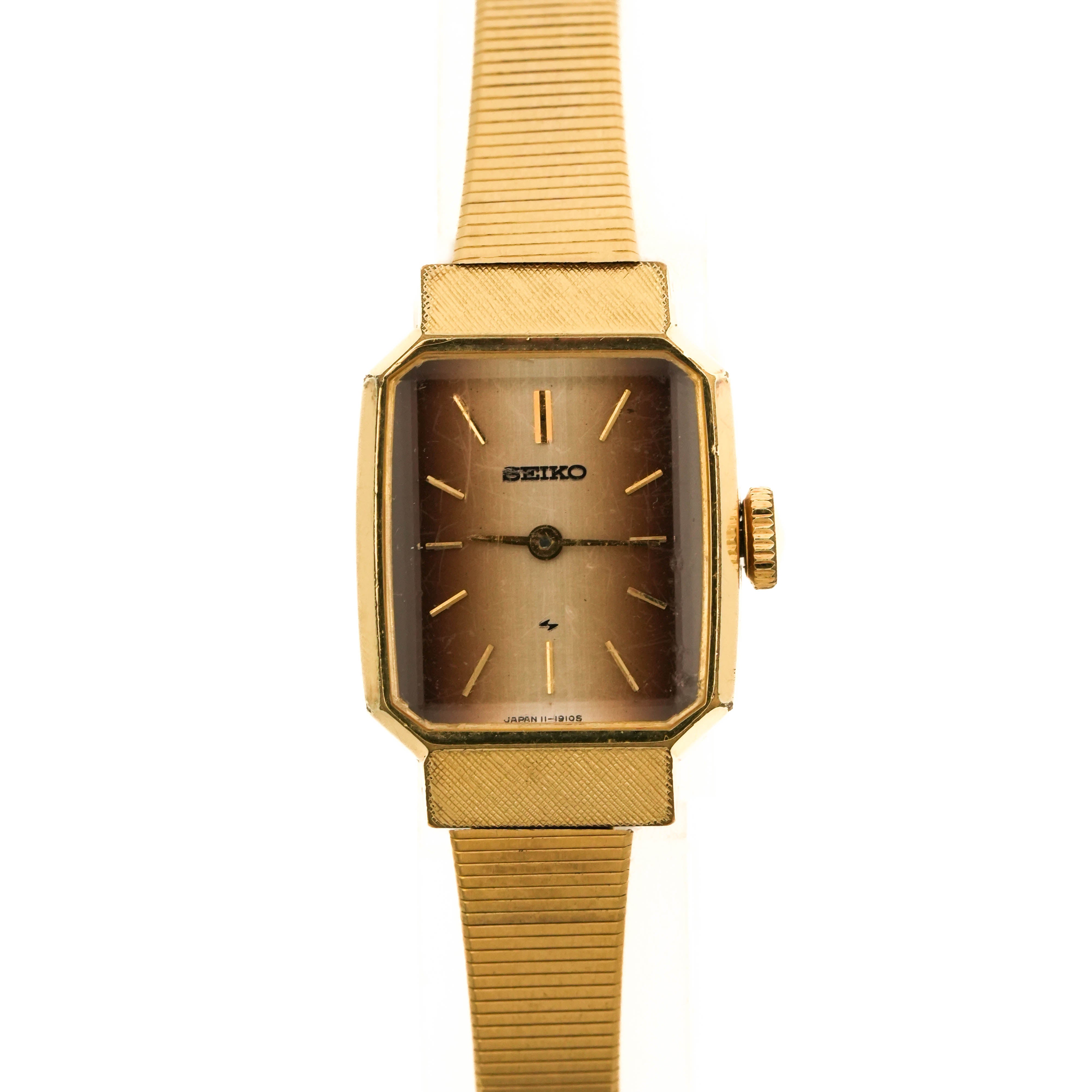 Ladies Seiko Vintage Gold Bracelet Watch Champagne Rectangular Dial